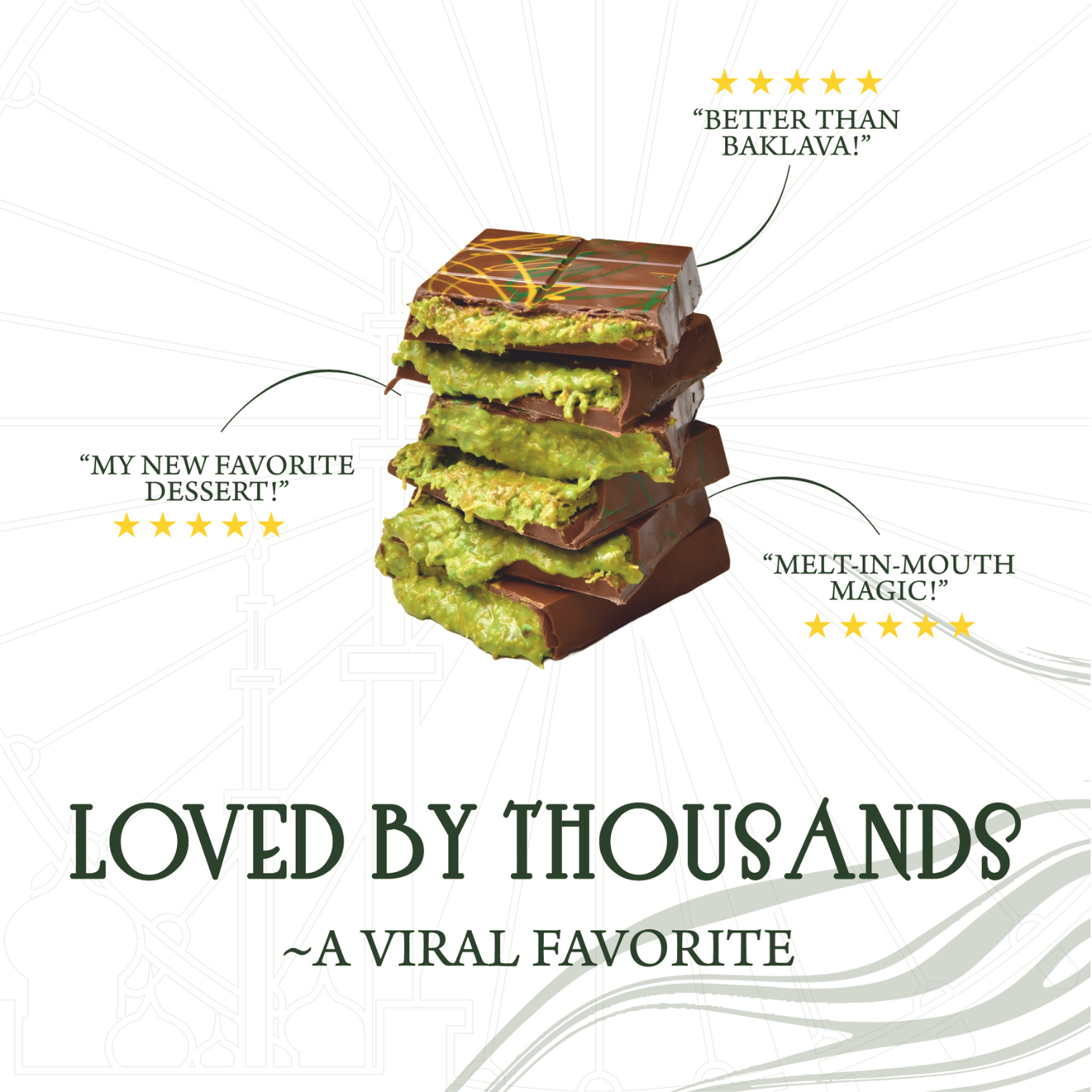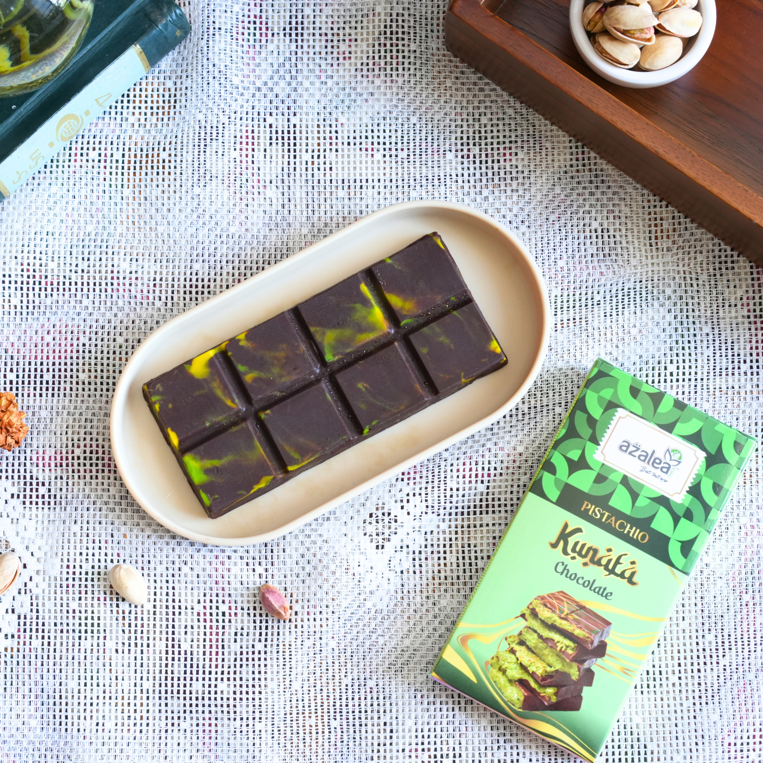 Experience the rich blend of tradition and indulgence with Azalea Kunafa Pistachio Chocolate. Crafted with delicate kunafa strands layered with premium pistachio nuts and smooth milk chocolate, this treat offers a sophisticated balance of textures and flavors. Ideal for those who appreciate artisanal sweets, it delivers a refined taste that highlights the nutty richness of pistachios combined with the luxurious creaminess of chocolate. Perfect for gifting or elevating your dessert selection.