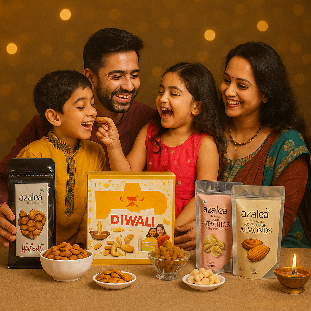 At Azalea Nuts, we believe every celebration deserves a touch of health and happiness. Our premium range of dry fruits β from crunchy almonds to rich cashews β brings families closer with every bite. Share the goodness, gift the joy, and make every festive moment truly wholesome with Azalea.